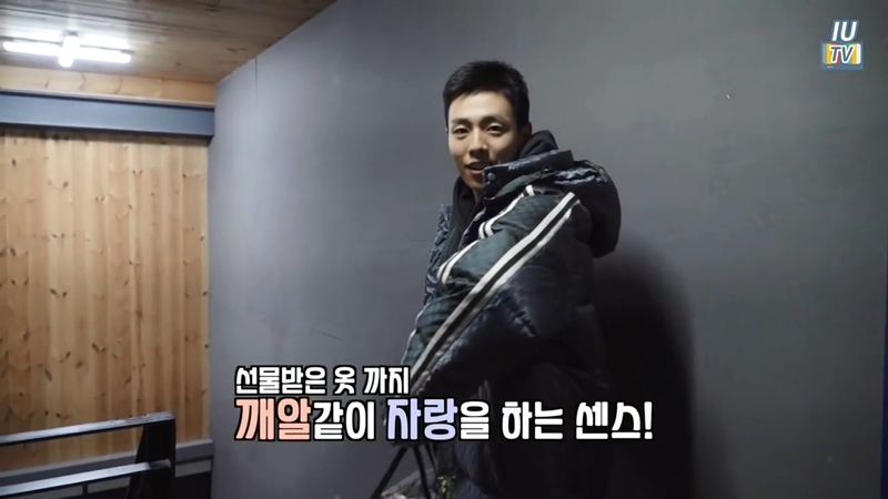 離開之前,李玹雨給《IU TV》的攝影師秀了自己身上的長版羽絨外套!依據畫面上所附上的字幕,原來這件羽絨外套是從IU那裡收到的禮物哦!