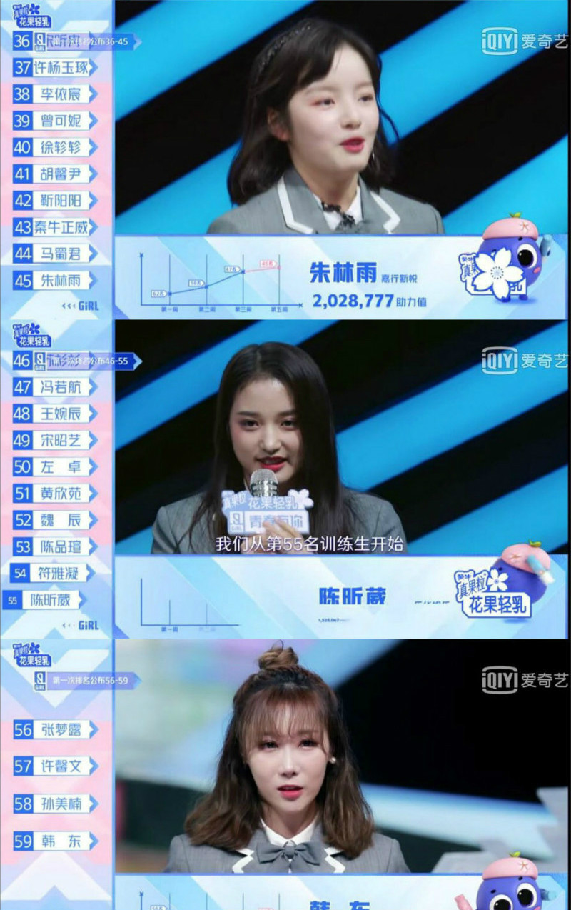 10~19 :上官喜愛、蔡卓宜、陸柯燃、張鈺、乃萬、喻言、夏研、王清、王欣宇、段藝璇