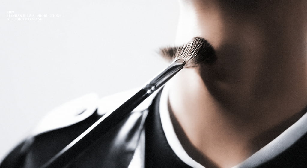 而雜誌放出的花絮中,有一幕完全KO了所有粉絲,那就是…王一博用化妝刷掃喉結!!!上圖!