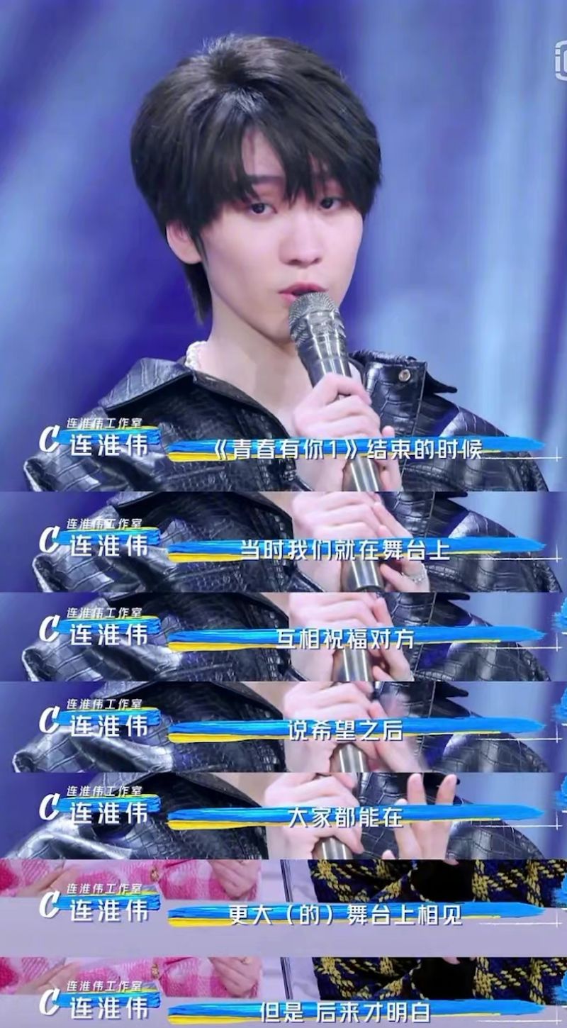 當時李榮浩導師在評價之前,問連淮偉再次回到這裡是怎麼樣的心情?連淮偉的答案真的讓人很揪心!他表示:「在《青春有你1》結束的時候,當時我們就在舞台上,互相祝福對方,說希望之後大家都能在更大的舞台上相見,但是後來才明白,青春有你1的舞台,可能是我們之間很多人,能站上的最大的舞台了。」