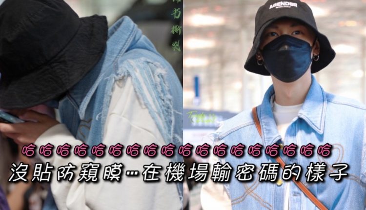 再來看看我們可愛的森哥,真的是長著192公分的大個子,但做著可可愛愛的事情!由於他的手機沒有貼上防窺膜,因此為了保密,在機場我們的森哥是這樣來輸入密碼的…