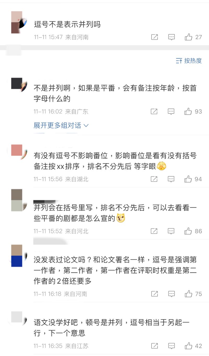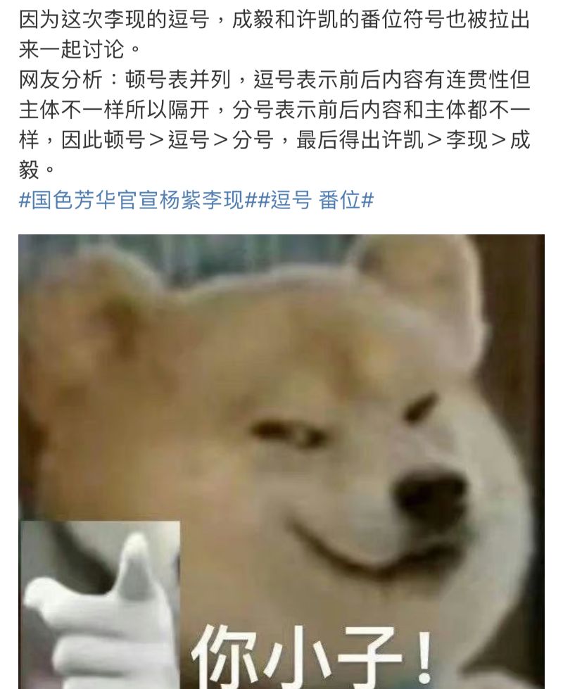 而網友再根據這三個標點符號:頓號>逗號>分號,最後得出許凱>李現>成毅,(⊙o⊙)…
