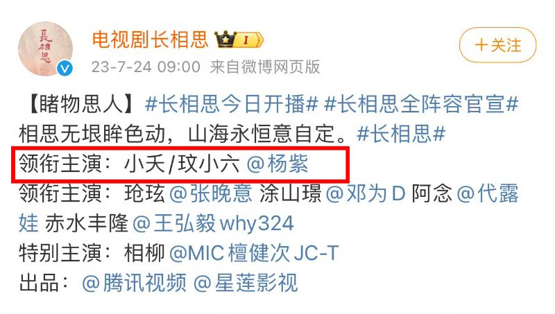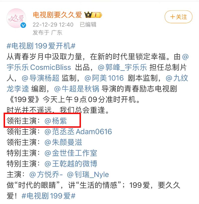 隨後在官宣文中,楊紫和成毅名字之間,用上了分號。