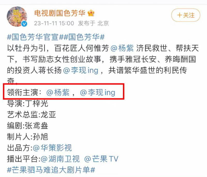 雖然但是,這次的官宣文意外引起了熱議,先來看看,這次官宣貼文,楊紫和李現名字出現在同一排,如下👇