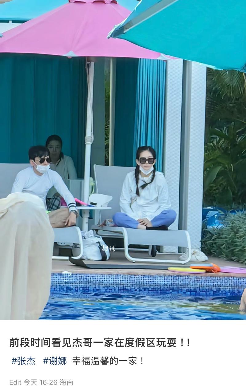 近日,有網友發帖,表示自己在三亞偶遇了張杰、謝娜一家人度假,並曬出了兩人的照片~只見夫妻倆同款坐姿,盯著前方看👇