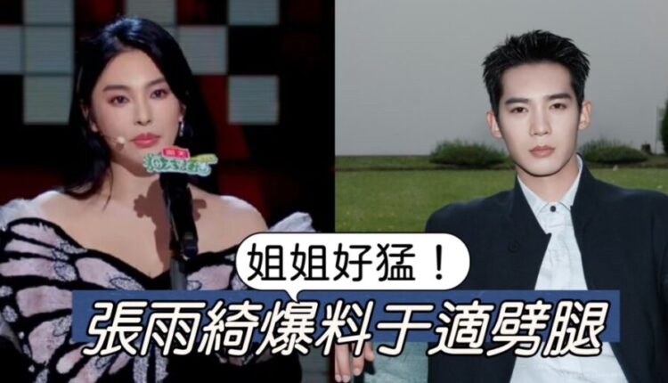 到底說的是什麼事呢?張雨綺以「我有一個朋友」講述姐弟戀被劈腿故事,分手時男方說「你算我二姐」。關鍵是張雨綺還說了「馬背上劈腿」「大胸肌」等,全都是和于適相關的關鍵詞!重點,這姐還大喊一句「於是 分手了嗎」
