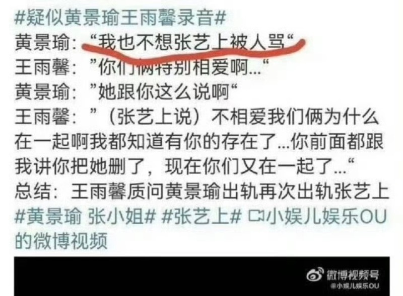 而在2023年,一段疑似涉及黃景瑜和張藝上的錄音被扒出,但當時沒有引起太大關注。