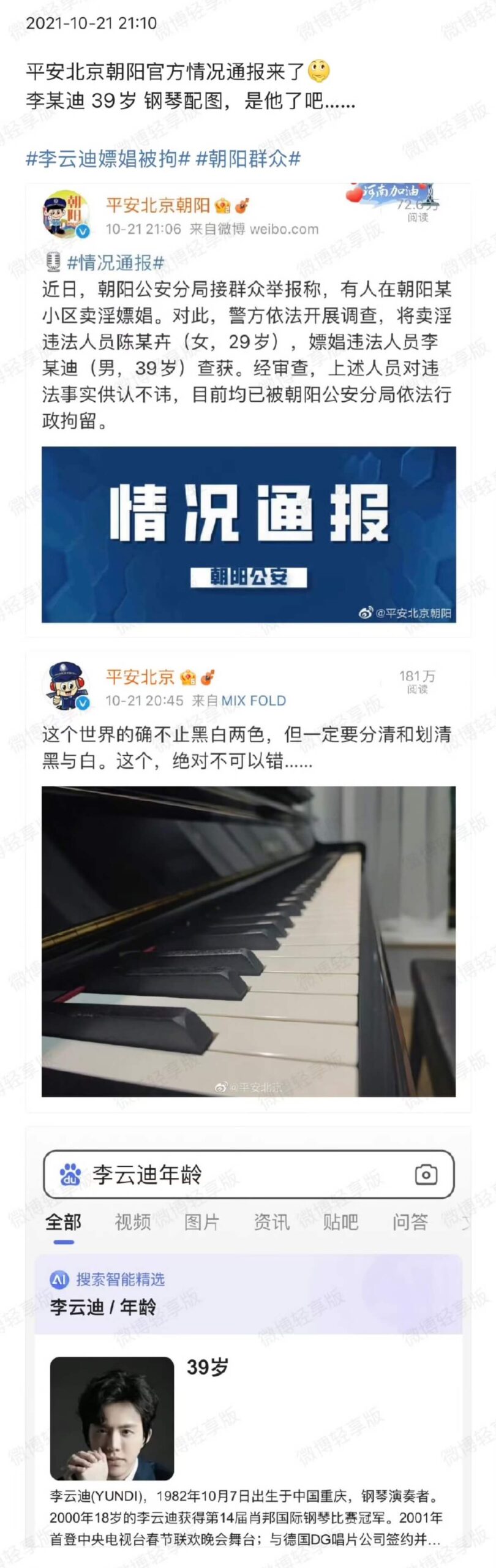 李雲迪曾在2021年10月21日,因為嫖娼被北京朝陽公安分局依法行政拘留。隨後遭到行業抵制與資格取消,目前都在海外巡演。