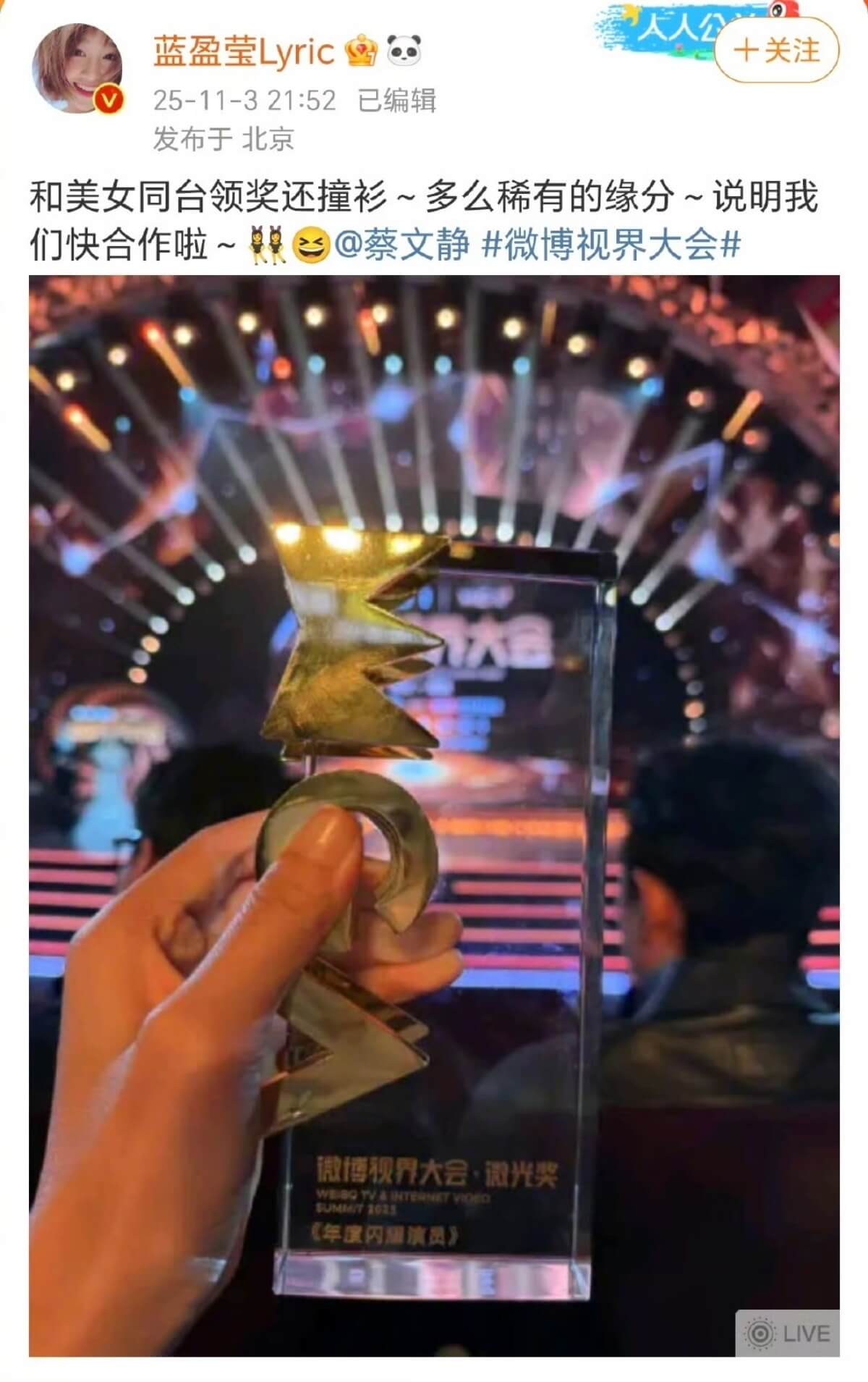 典禮之後,藍盈瑩也特別發文回應,相當有情商👇