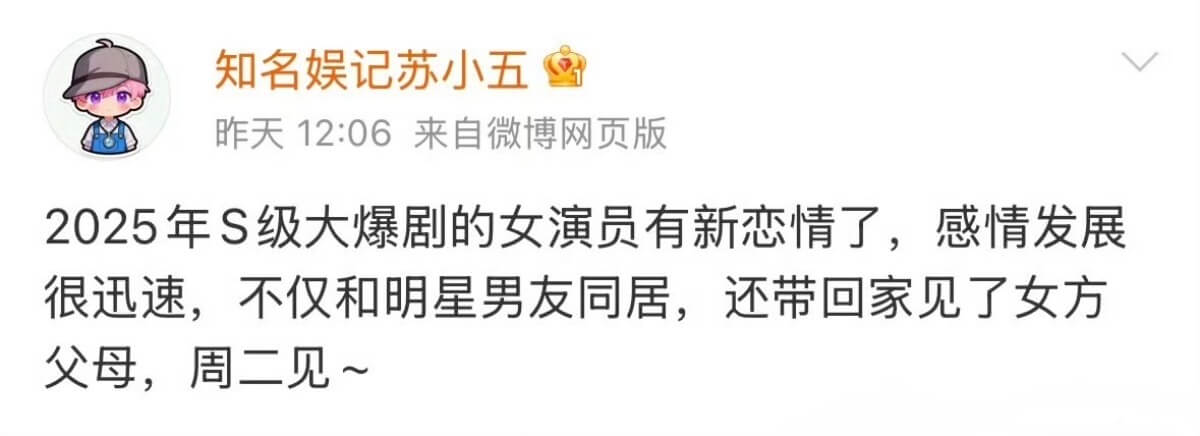S級大爆劇女主是邢菲!和男演員同居又見家長被拍!