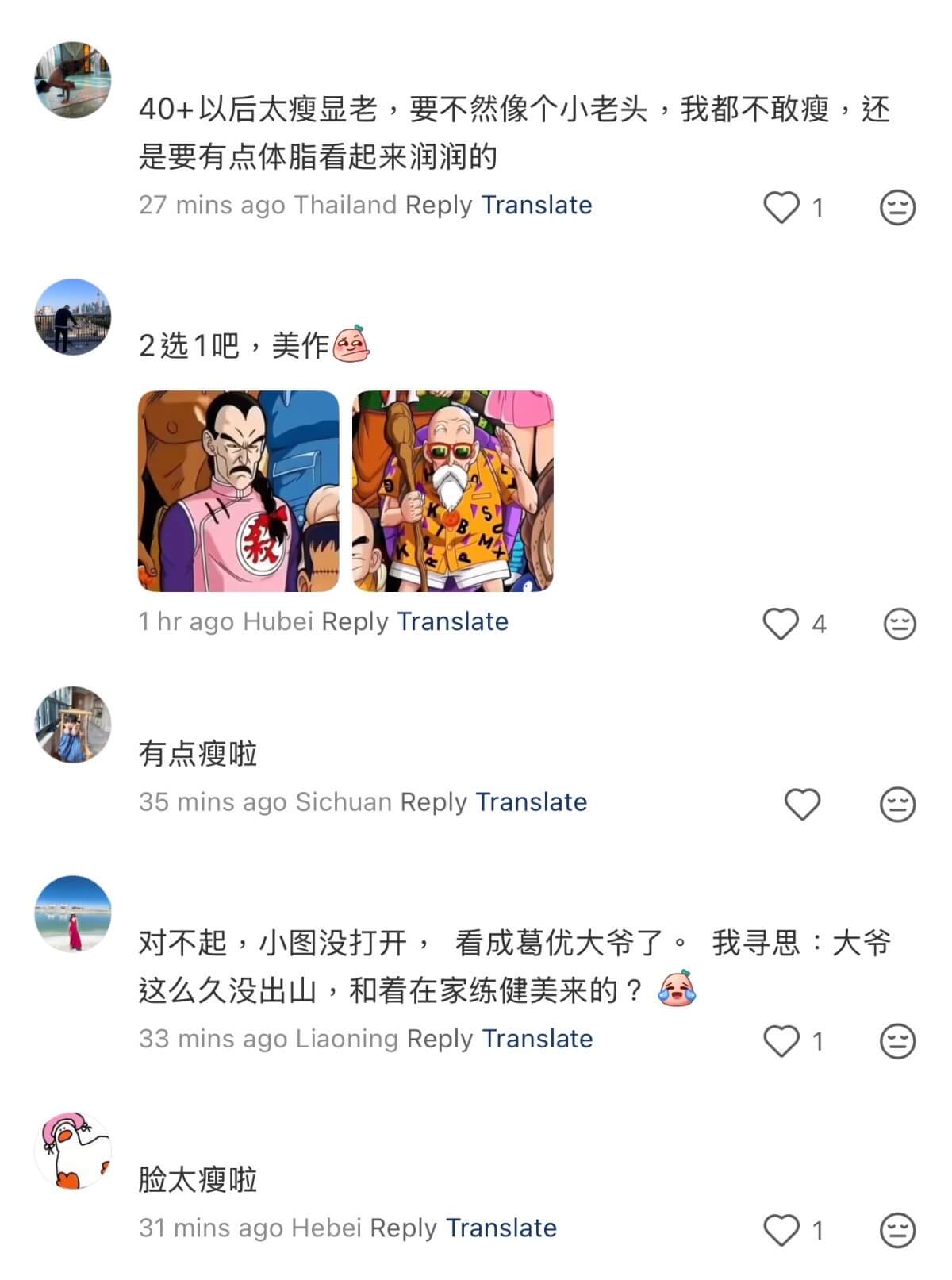 雖然但是,評論區還是覺得太瘦了,臉看起來撞臉葛優,而且很顯老👇