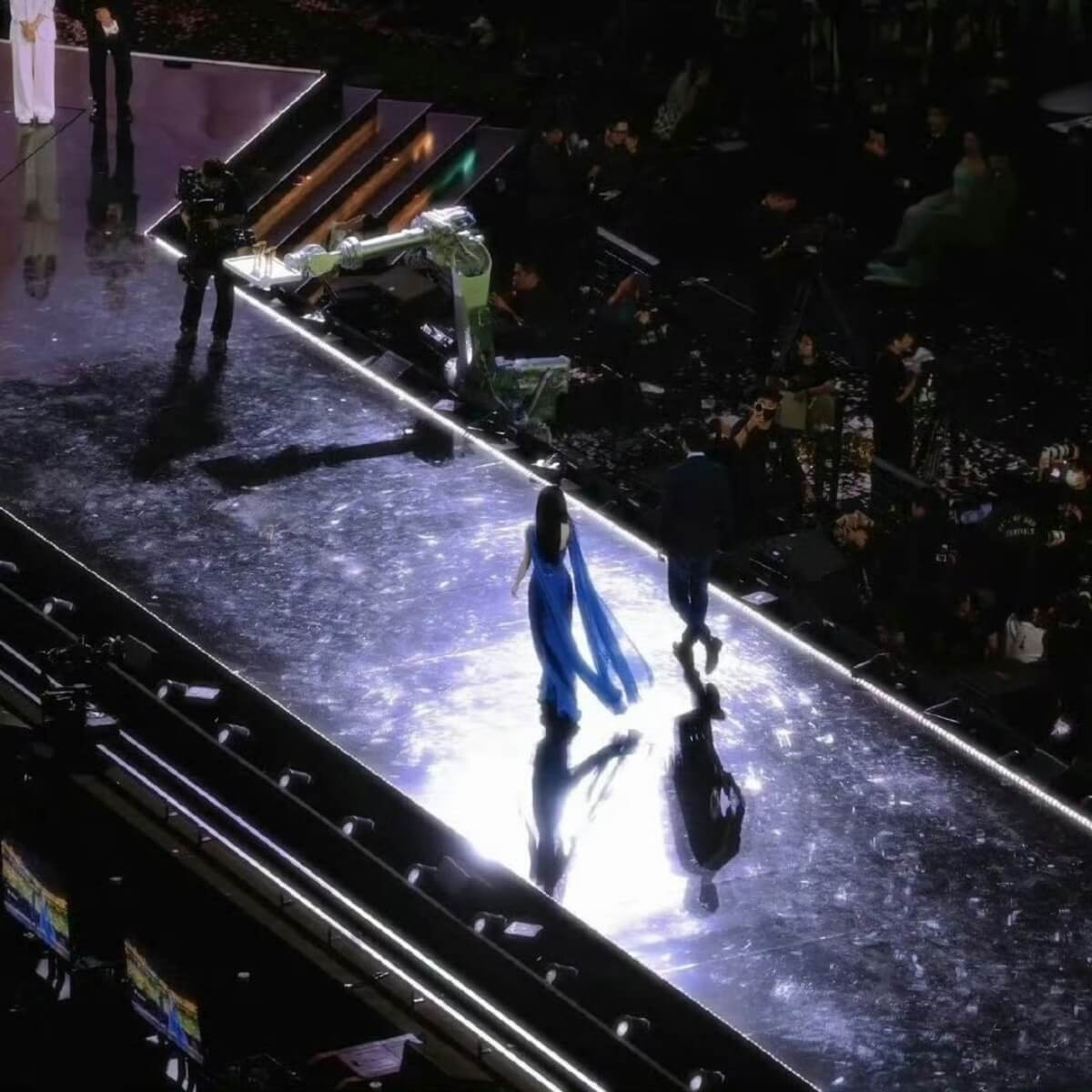 提到舞台上的神圖,自然少不了粉絲從山頂視角拍下的鞠婧禕登場圖,這背影真的超有氣場👇