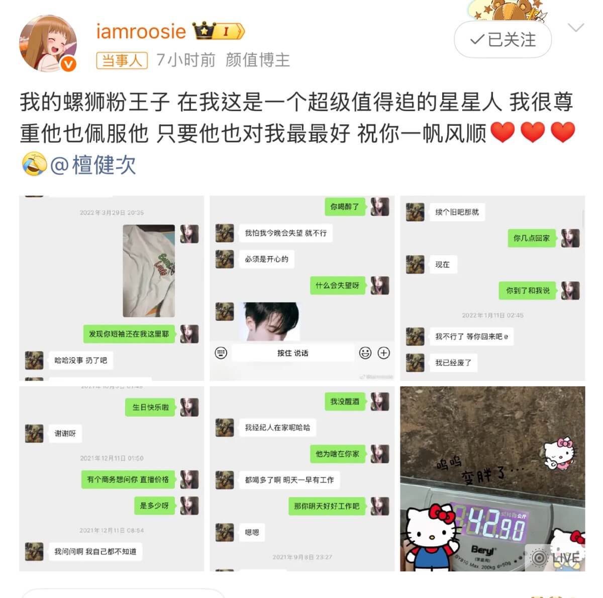先來看看司曉迪公開的和檀健次的聊天記錄,之後再慢慢分析👇