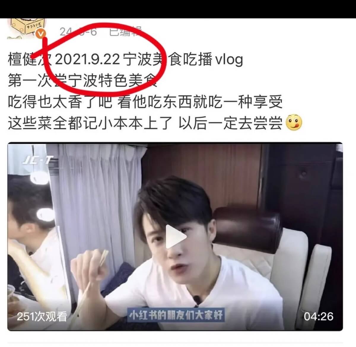 結果網友扒出,檀健次21年同月份,真的發過寧波的vlog👇