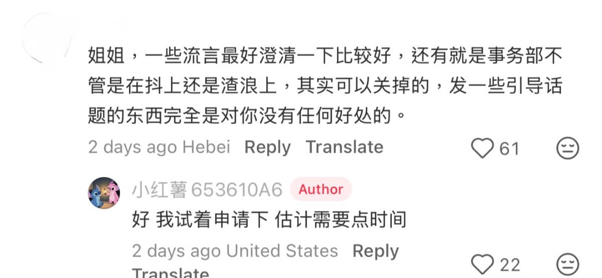 粉絲讓她澄清網絡留言,她表示會試著申請下👇