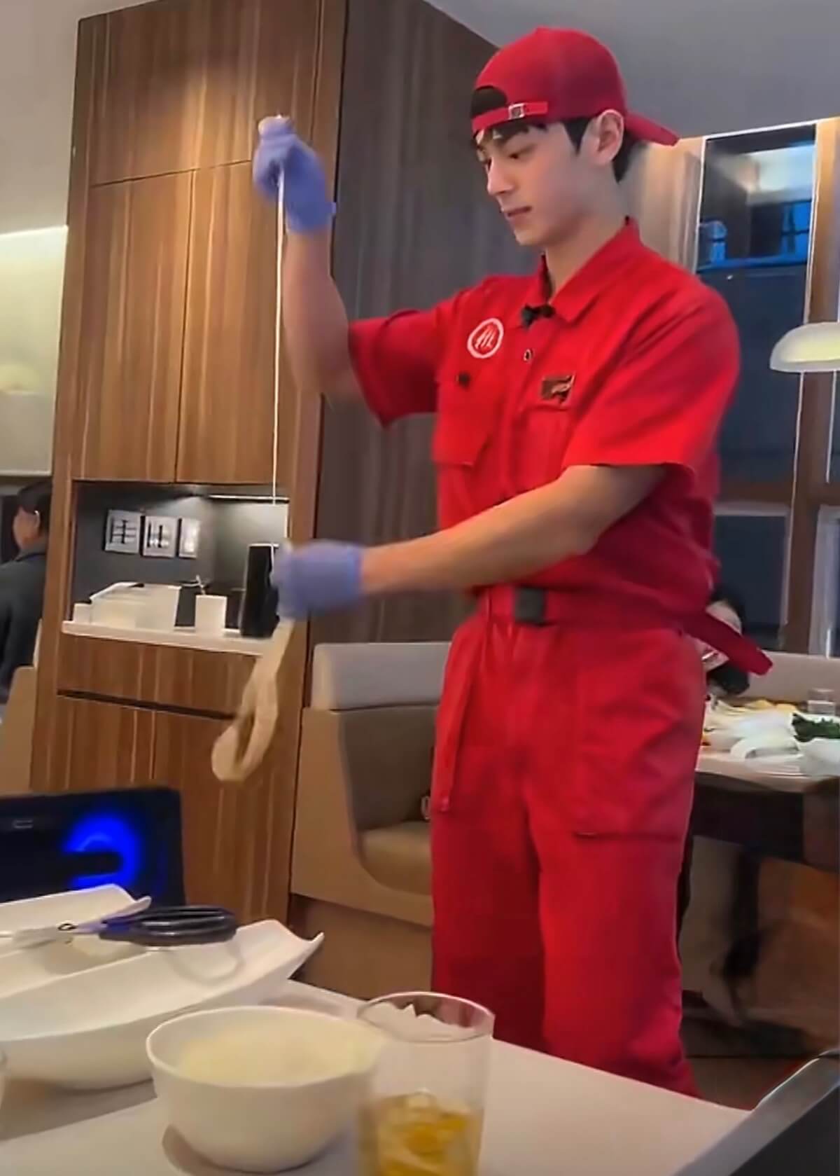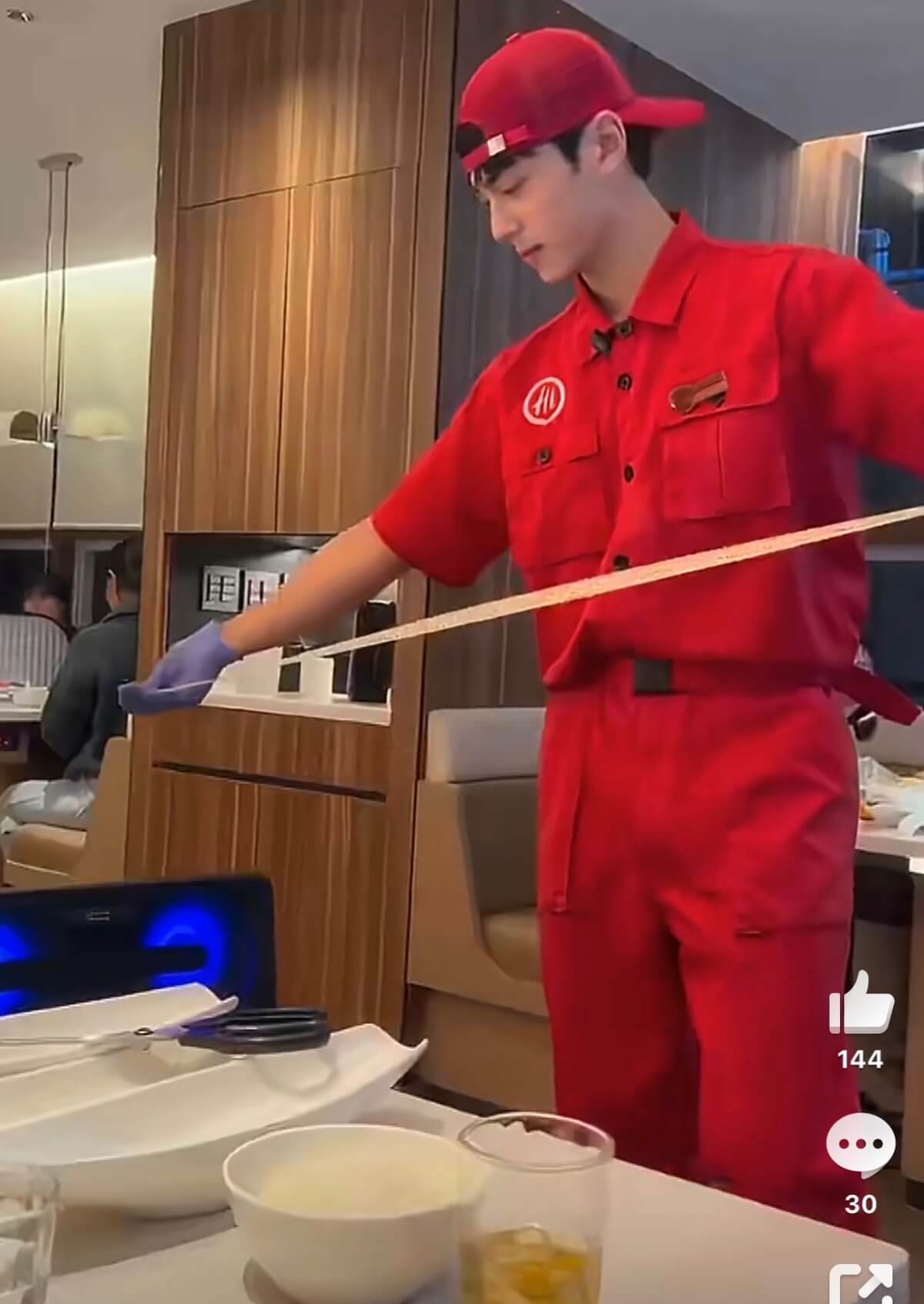 來看看,這名負責撈麵表演的小哥哥,長得確實和車銀優有點神似!