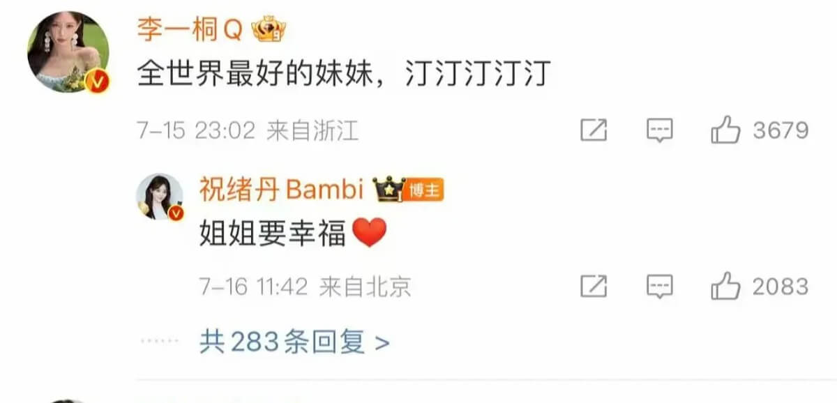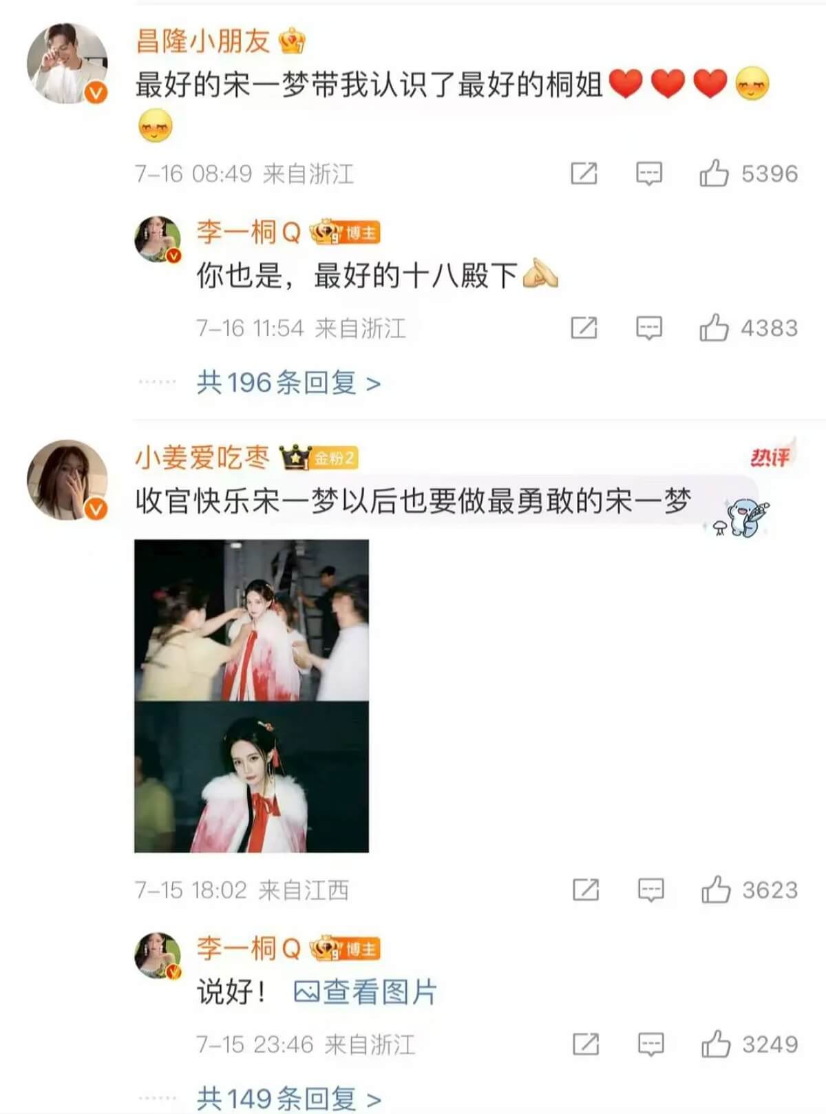 而在李一桐的《書卷一夢》收官微博,其他演員都在評論區互動了,唯獨女二祝緒丹沒留言👇