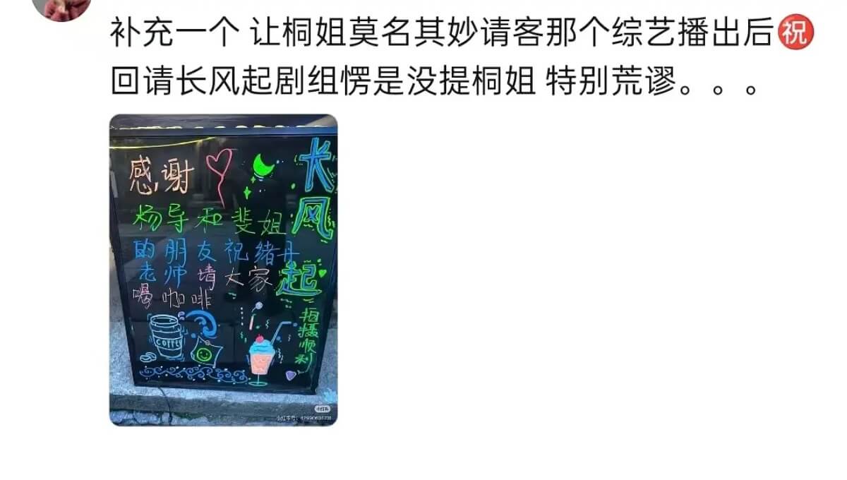 但抓馬的來了!注意看,請客聲明上,寫了請的是楊導和製作人,硬是沒有提同樣在這劇組的李一桐👇