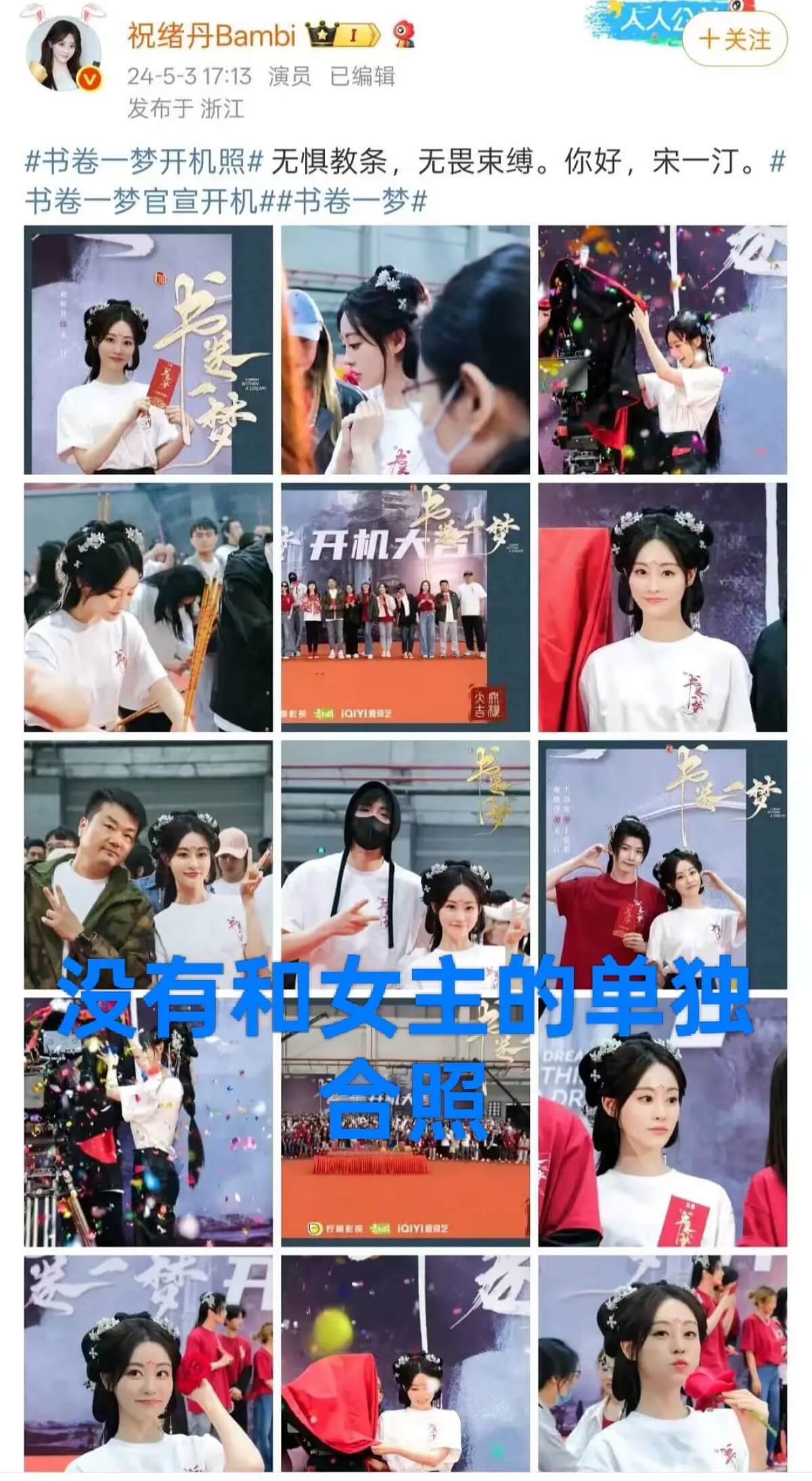 來看看,祝緒丹幾乎發了和主要演員的合照,唯獨沒有發女主李一桐,問題是當時李一桐也在場!