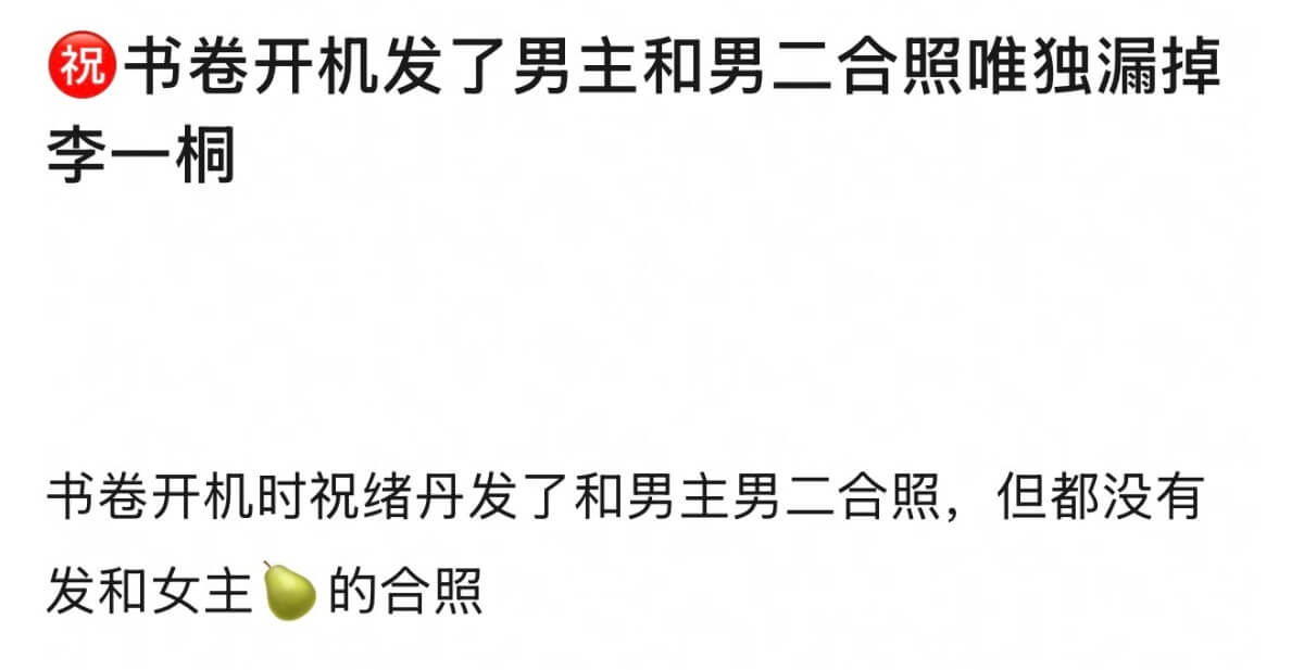 當時一開機,祝緒丹就因為沒有發和李一桐的合照被審判!