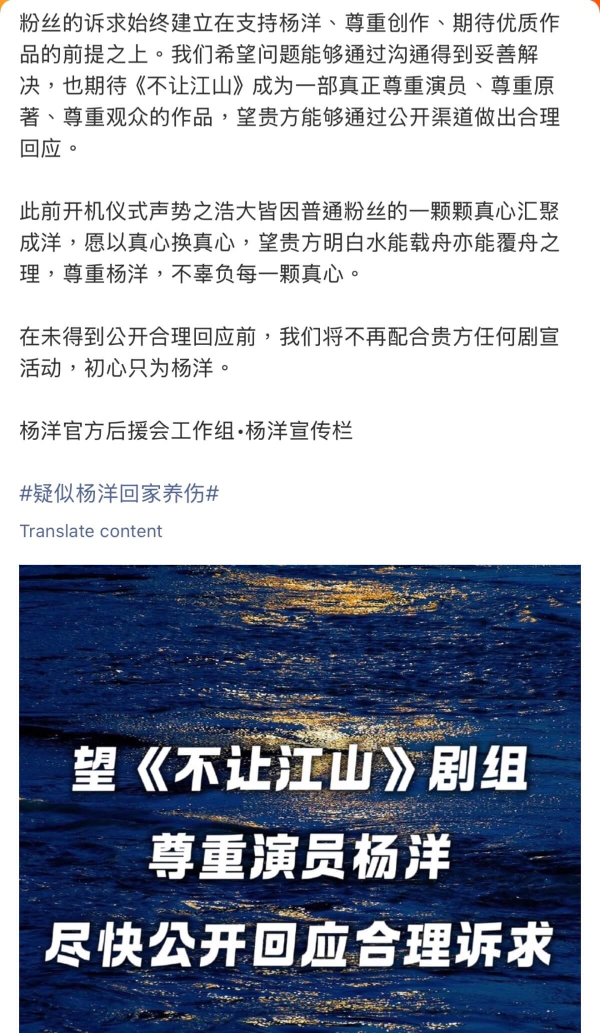 粉絲紛紛在維權,《不讓江山》劇組被指是「緬北劇組」,呼籲放過楊洋👇