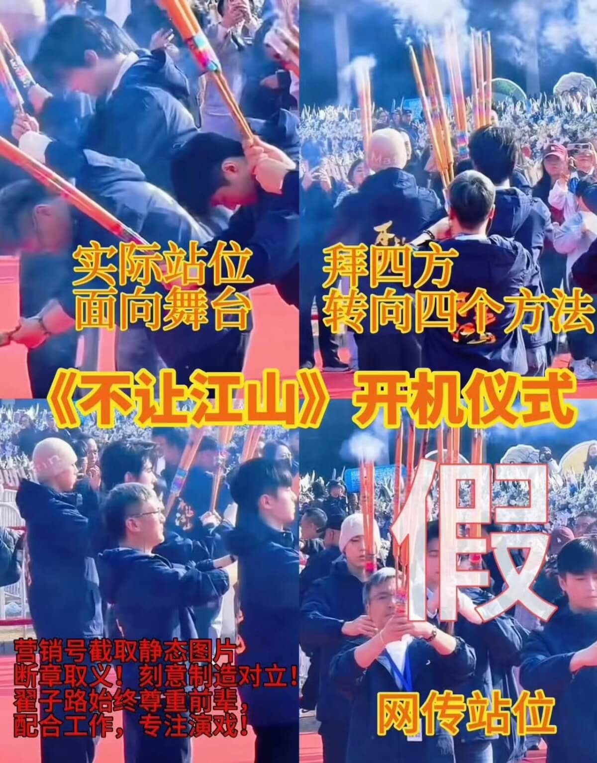 不過也有網友闢謠,表示這是因為需要向四面上香而造成的錯位,實際上全體演員都是站在同一排👇