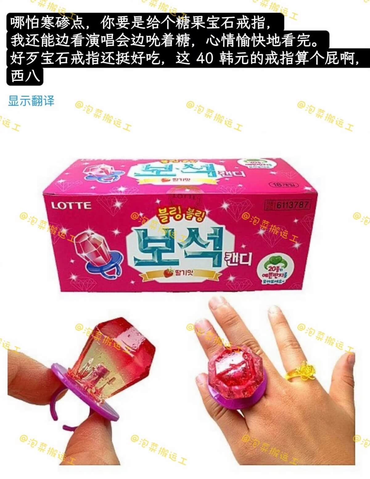 甚至還有粉絲吐槽,收到這個還不如收到糖果寶石戒指,至少還可以拿來吃👇