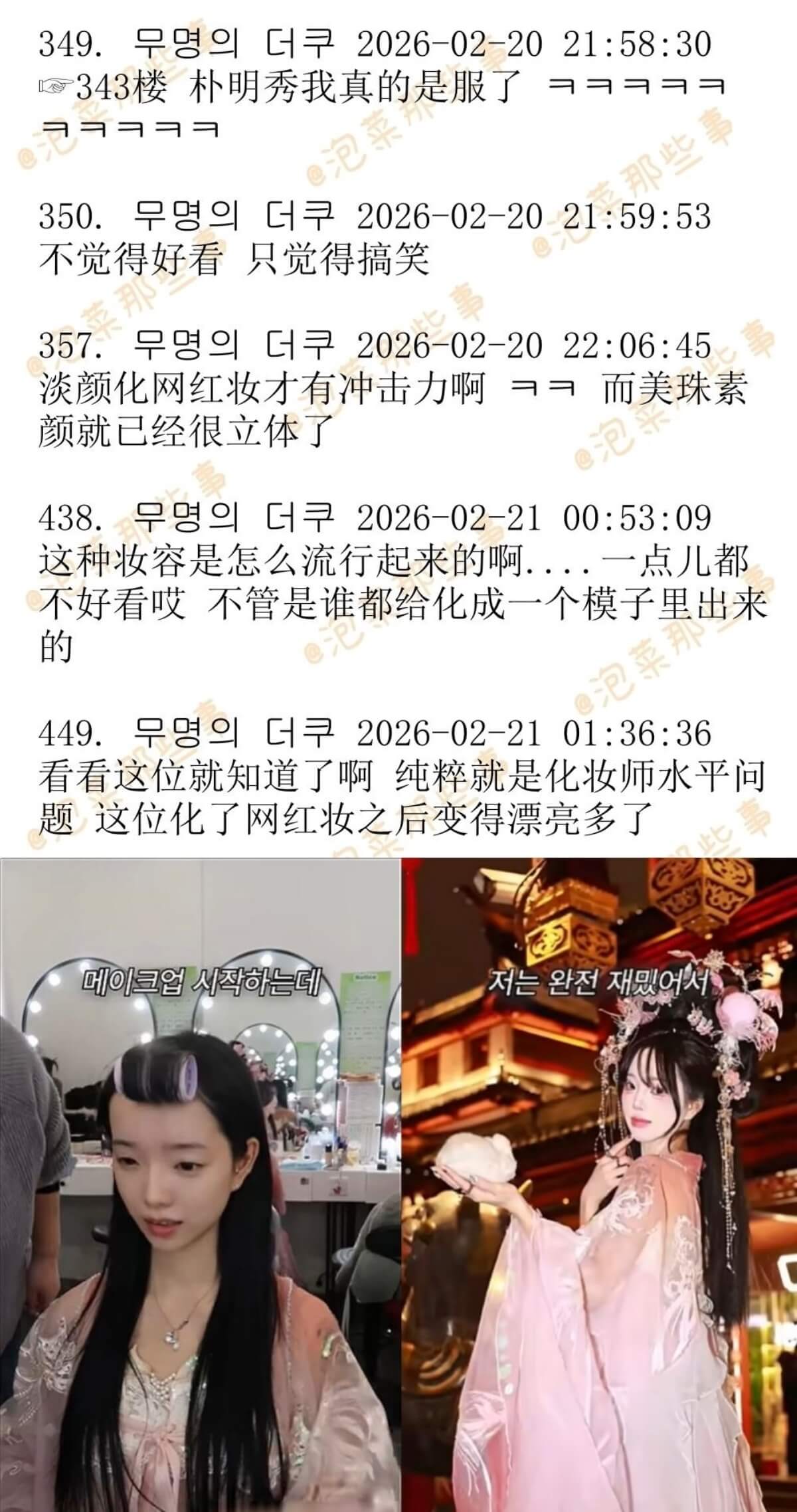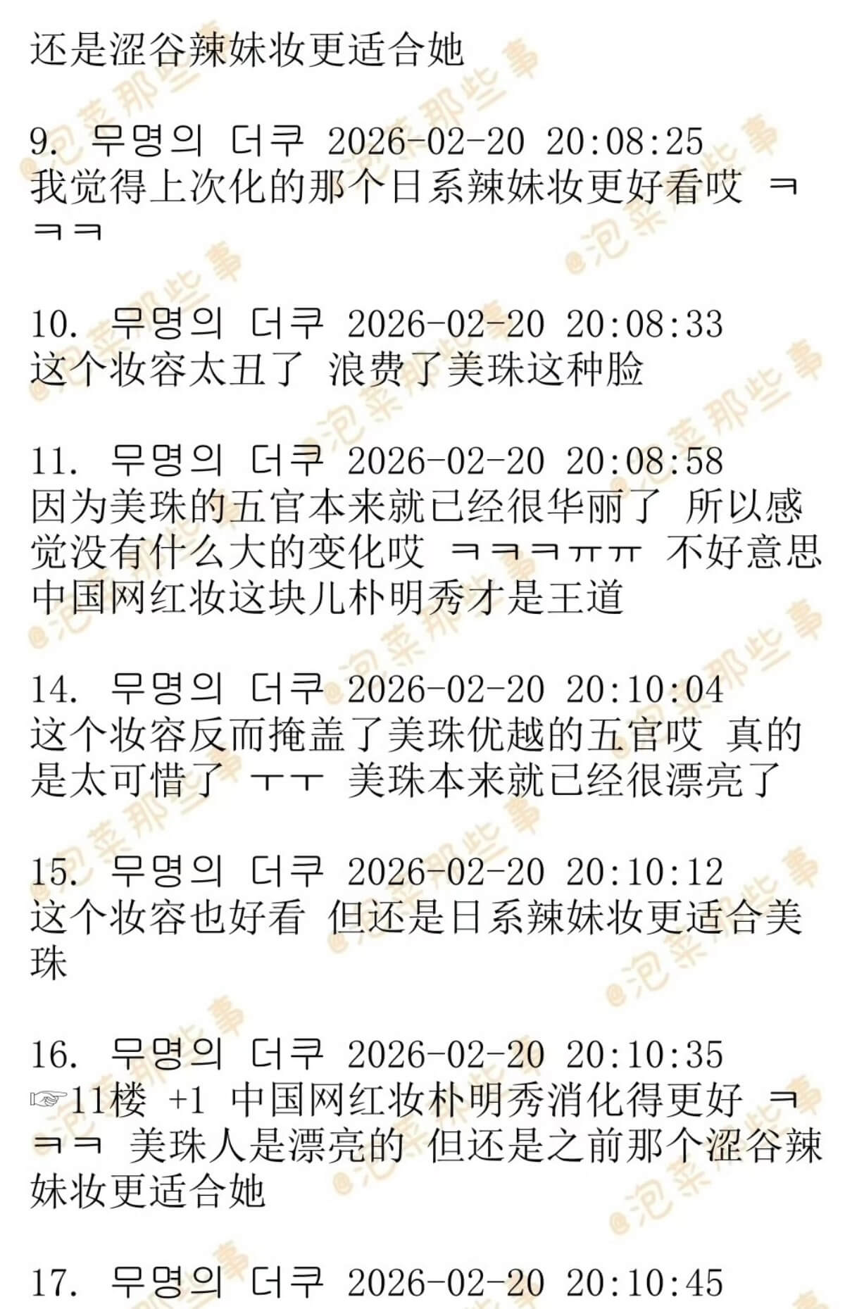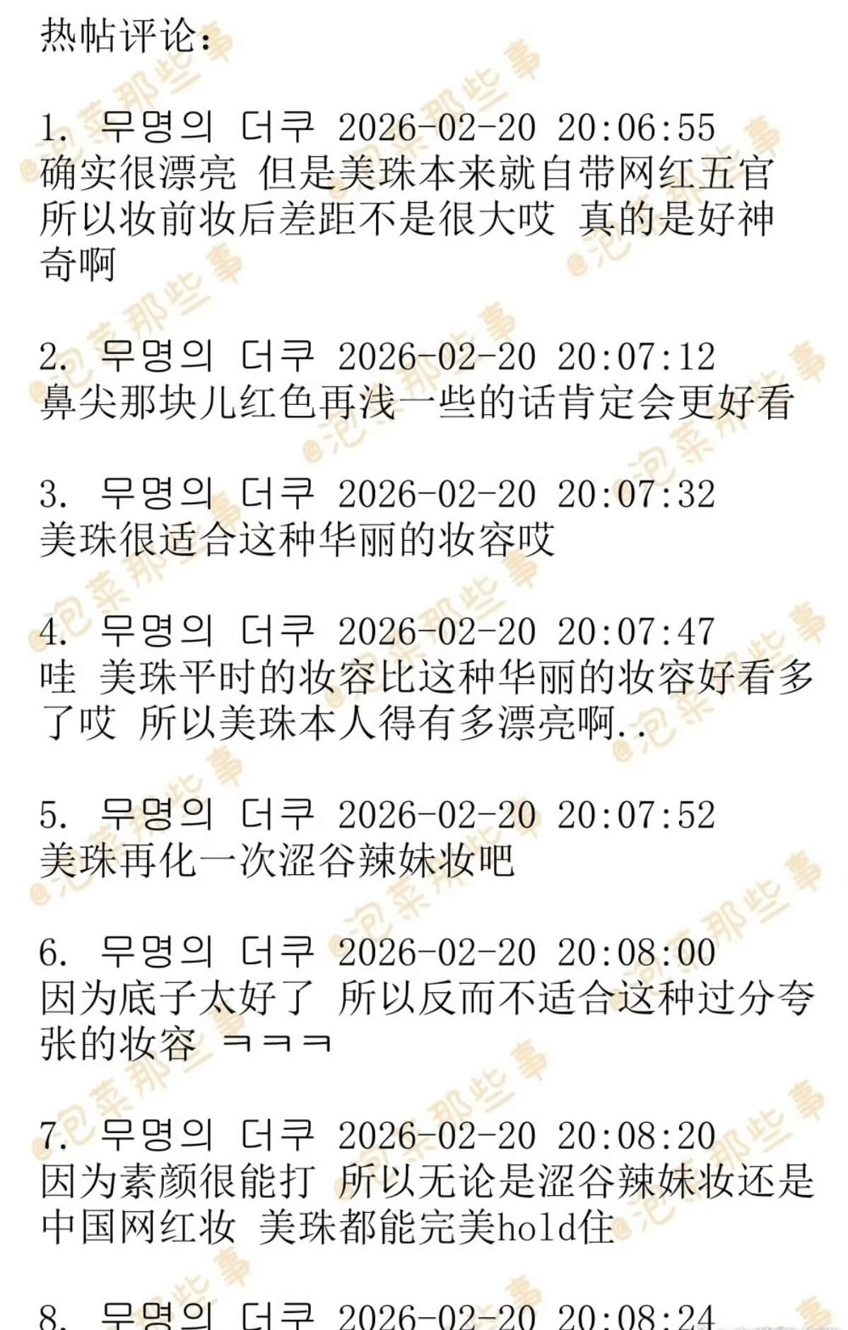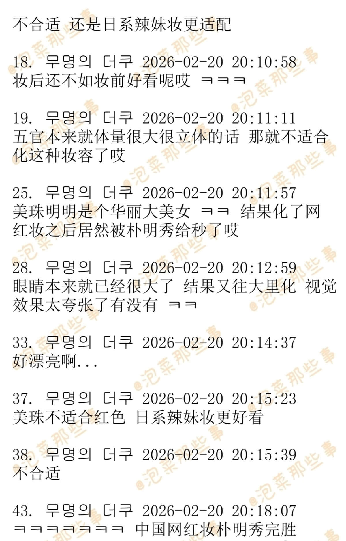 來看看網友的評論,有些認為美珠本身五官就很立體,所以化起網紅妝很好看!但也有認為美珠找的化妝師不行,還得是朴明秀的更好看👇