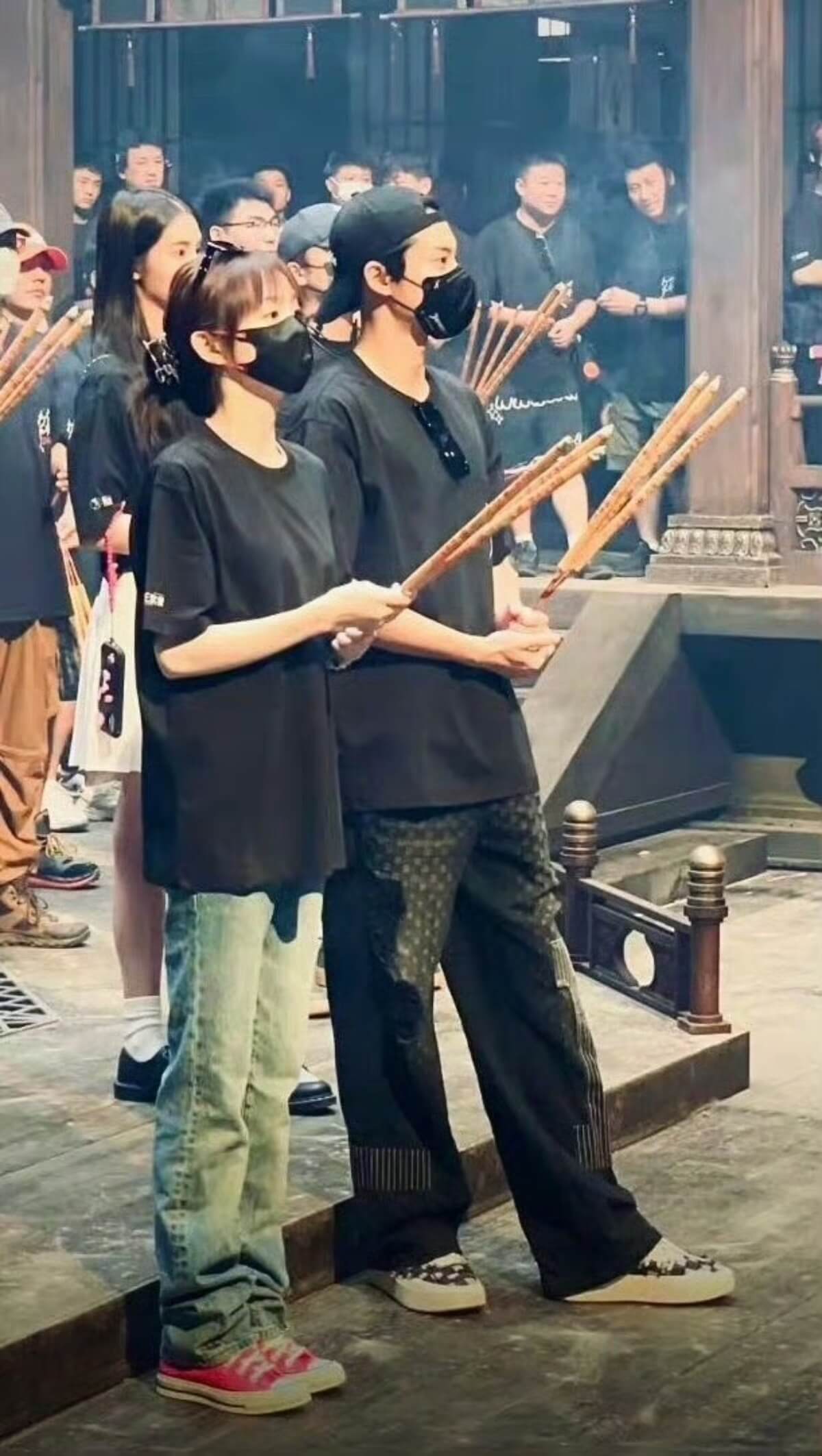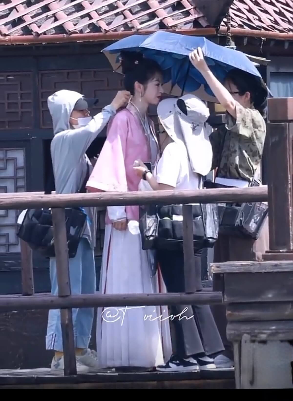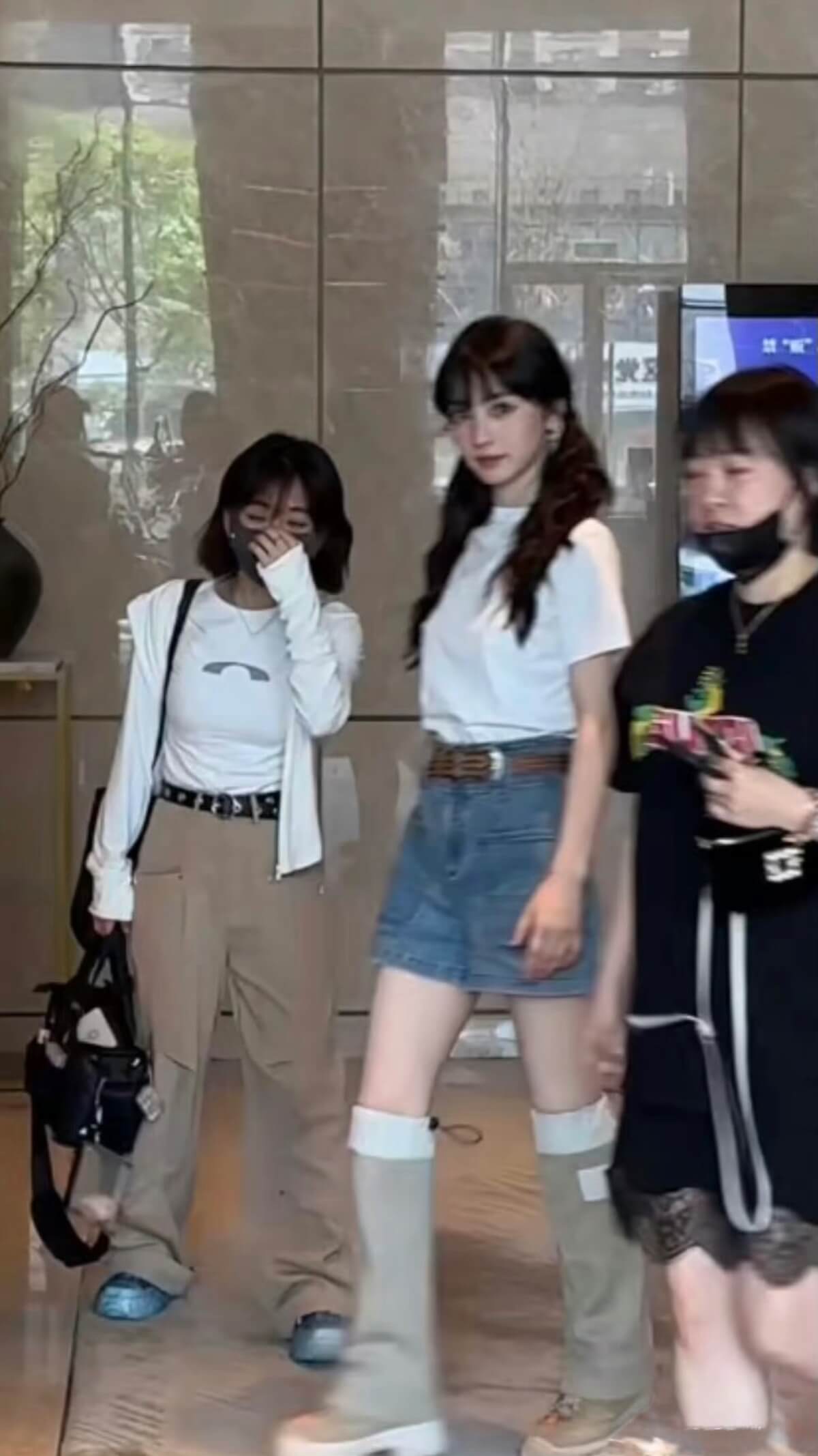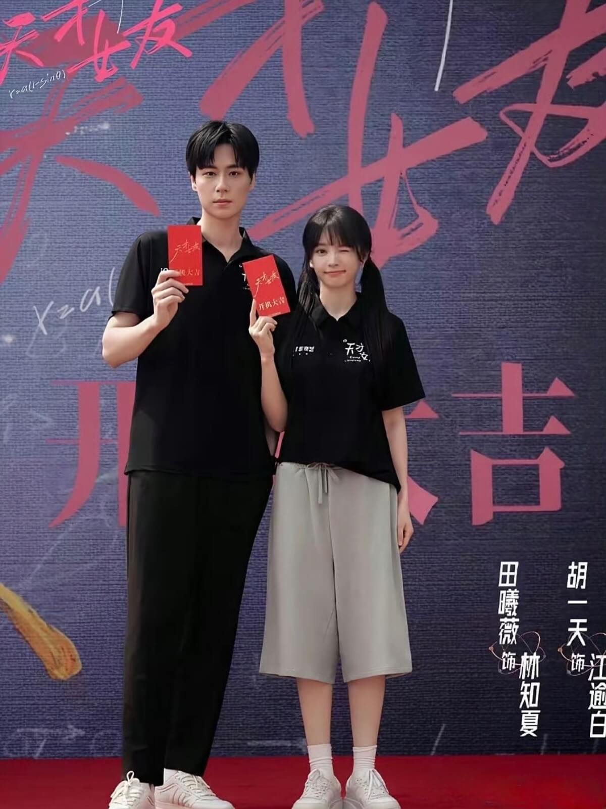 穿著平底鞋和183公分的王鶴棣同框,簡直快同水平線了👇