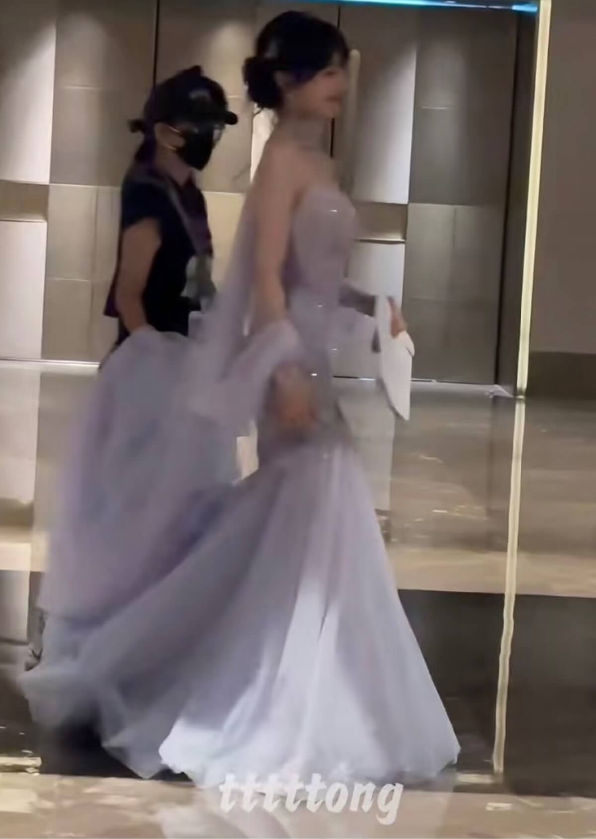 穿著平底鞋和183公分的王鶴棣同框,簡直快同水平線了👇