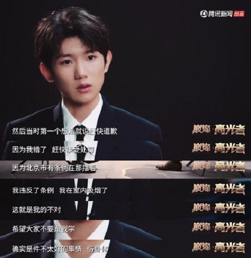 王源表示當時一大早起床刷微博,就看到了「王源抽菸」的消息,他說:「當時心情確實咯噔一下,然後第一個想法就是趕快道歉,因為我錯了,趕快接受處罰。因為北京是有個條例在那擺著,我違反了條例,我在室內吸菸了,這就是我的不對。希望大家不要跟我學,確實是件不太好的事情,傷身體。」