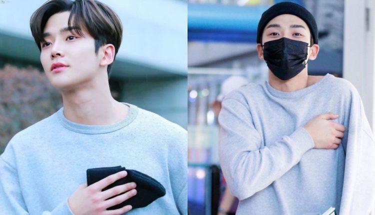 穿著灰色衛衣的路雲,邊走邊把手放在胸口的位子,原來他是為了遮住衛衣上的牌子名字。想必粉絲們都知道,最近SF9代言了服裝品牌,作為最稱職代言人的金路雲,因為穿了非代言品牌的衣服,所以就想到把牌子的logo遮起來,大家不覺得這樣的路雲很可愛嗎?
