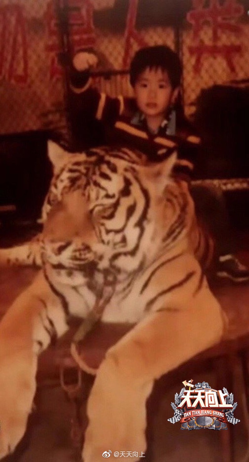 王一博小時候的膽量就很大了,竟敢和老虎近距離合照耶!
