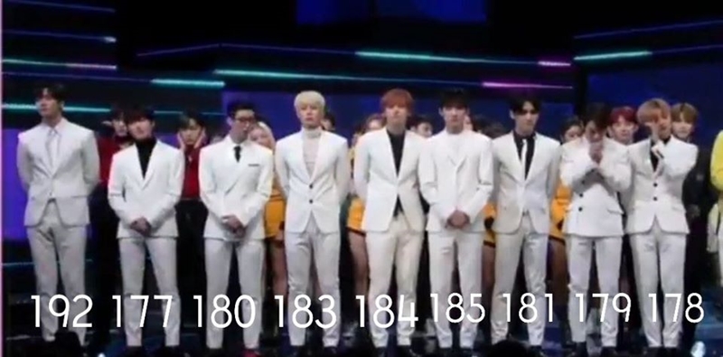 是說,網友們特別截圖和製作了SF9在台上等待成績宣佈的畫面,還顯示了每位成員的身高!平均身高181公分的SF9,把後方的歌手們都遮掉了呢~哈哈!