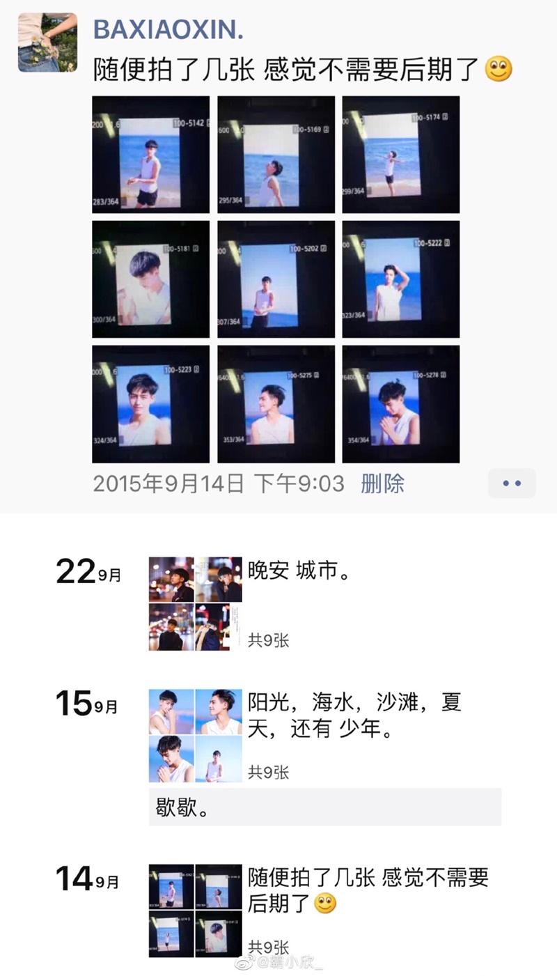 對於那次合作,霸小欣曾發博表示:「2015.9.14 四季輪迴,一轉眼就四年了。當初在沙灘上奔跑的小男孩一轉眼變成了那麼多人喜歡的大男孩,眼神裡的清澈跟固執一點沒變。那時候剛剛拿起相機不久的我,第一次面對鏡頭的你,怎麼也不會想到會有那麼多人喜歡這組照片。只是單純記得那天陽光炙熱,風很輕海很藍。」