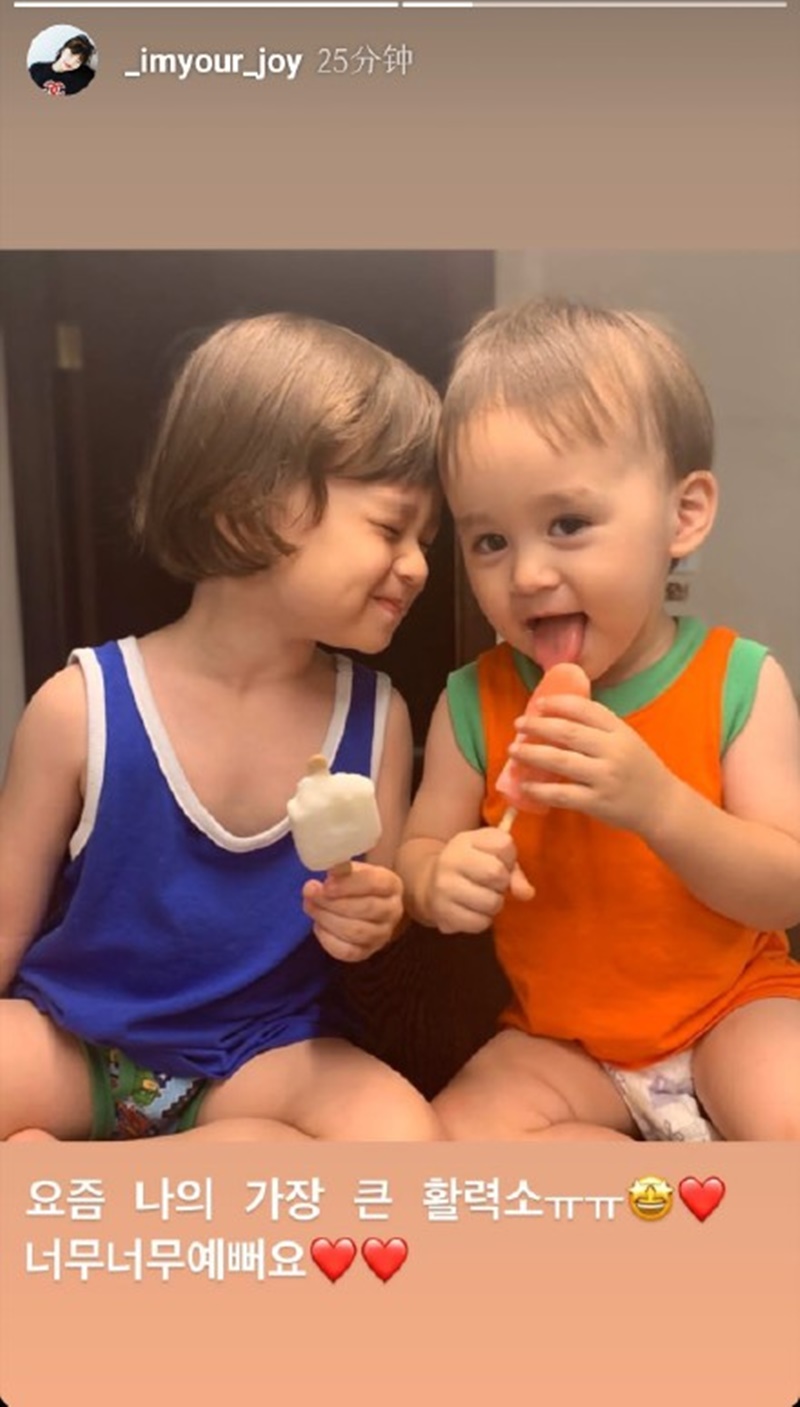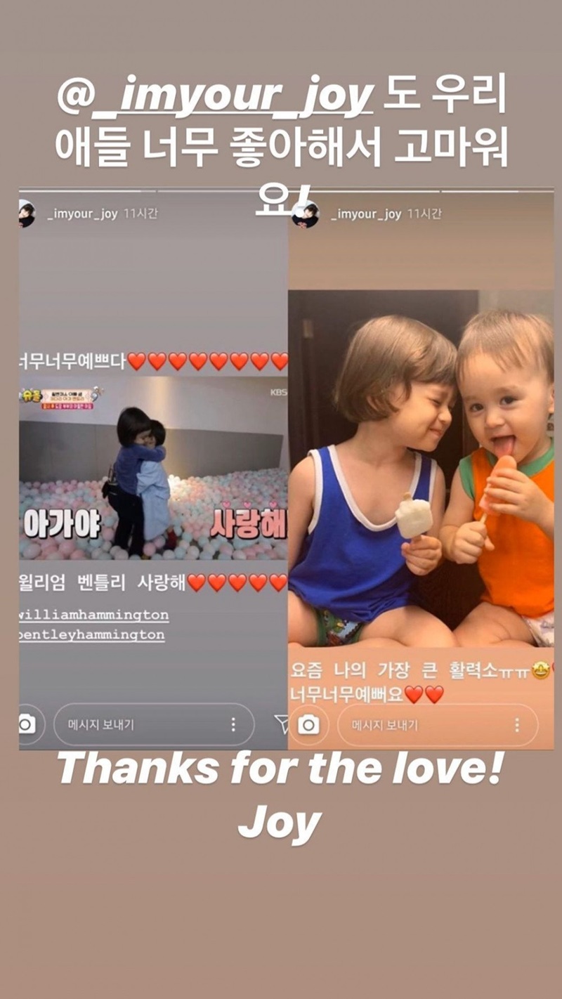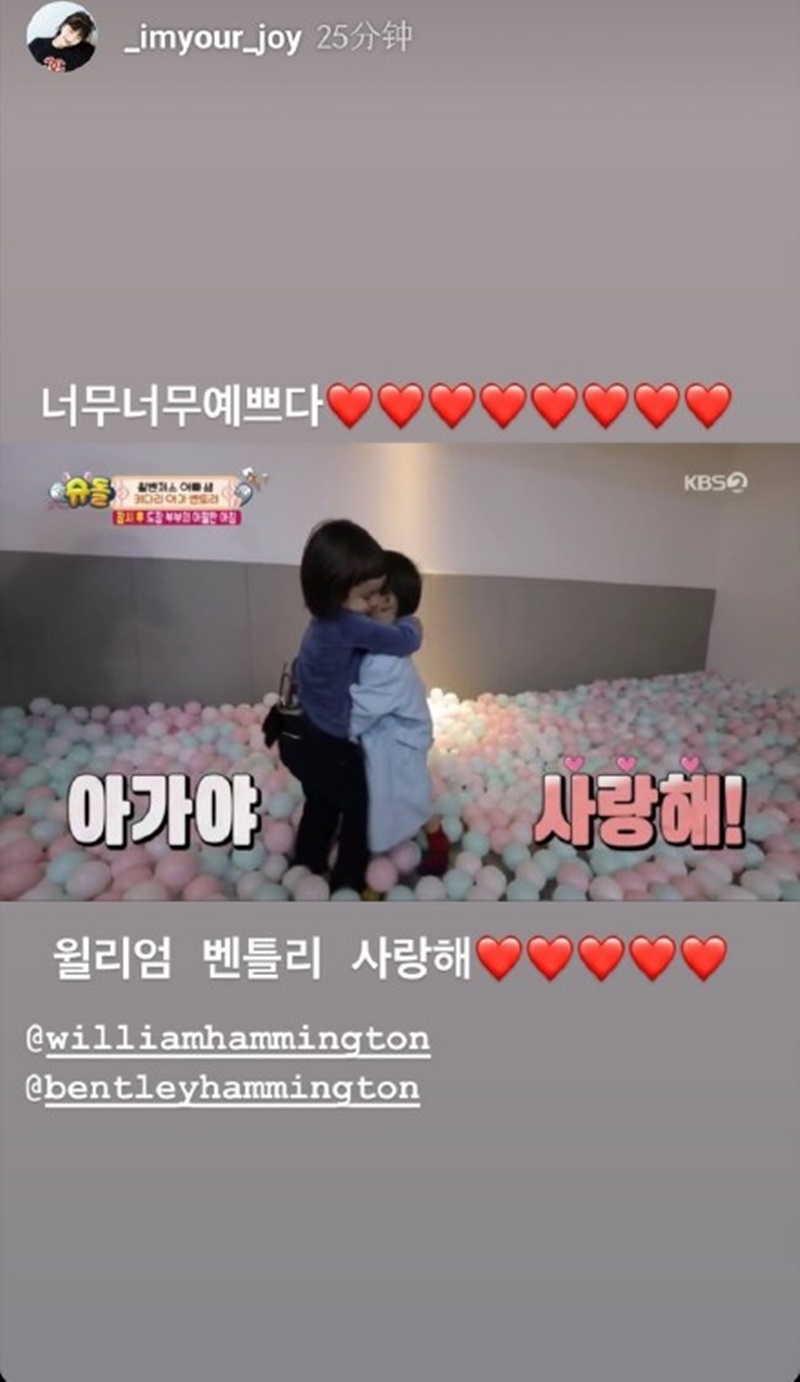 Joy表示一直都有在關注「威本兄弟」,還通過IG實時動態表示威廉和本特利是自己最近的「維生素」,直呼兄弟倆太可愛了!
