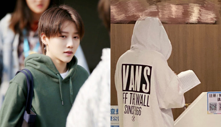 劉雨昕低調地穿著白色長袖帽T,但還是被認出來了。