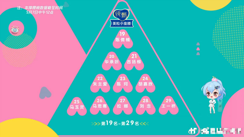 第19~29名:陳倩楠、華承妍、吉揚柳、朱主愛、陳珂、胡嘉欣、馬玉靈、馬思惠、拉娜、劉念、王一橋