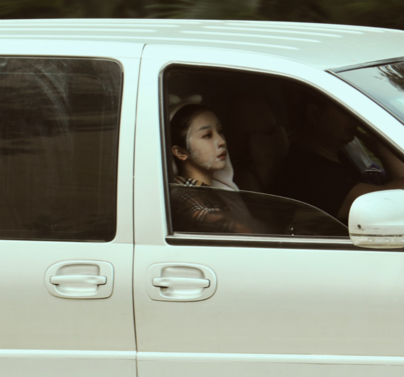 多次在飯拍中,趙小棠也被發現直接是敷著面膜坐在車中。