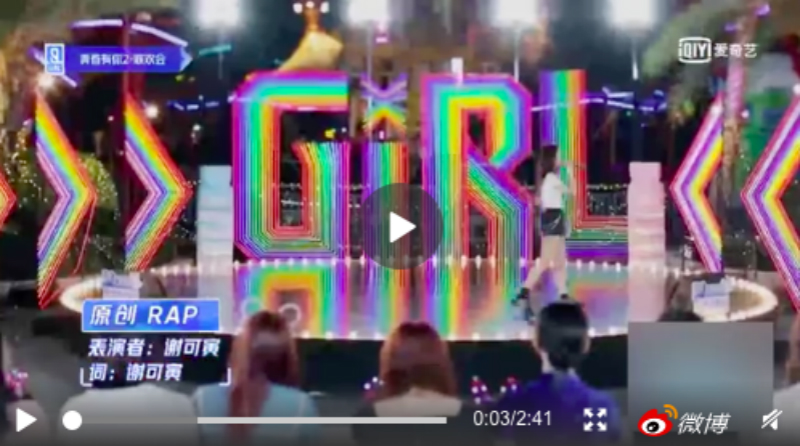 謝可寅也為《青春有你2》的訓練生們創作了一首Rap,她還強調beat(伴奏)是網上找免費的那種。