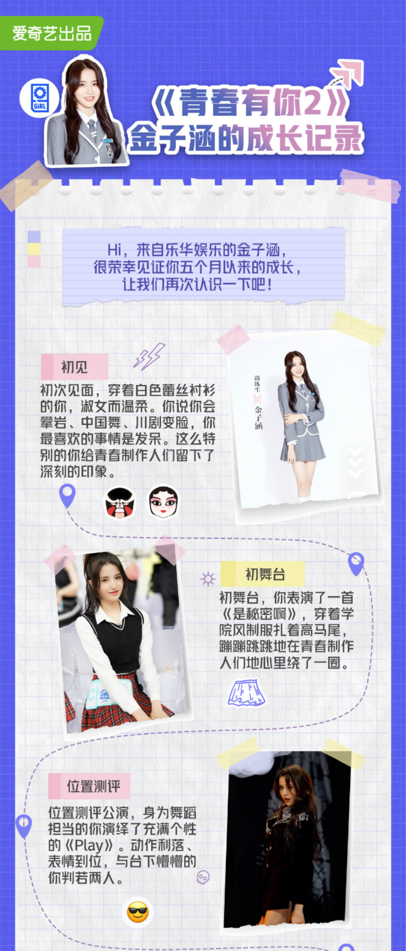 “我想要站上更大的舞台,我一定不會辜負所有人的期望,我一定會實現自己的夢想。”訓練時全力以赴、舞台上发光发熱的你,台下卻是可愛的“小迷糊”。你遠比想象中的自己更強大,要相信這句話存在的意義,並堅定地追求自己的夢想吧!加油,金子涵!