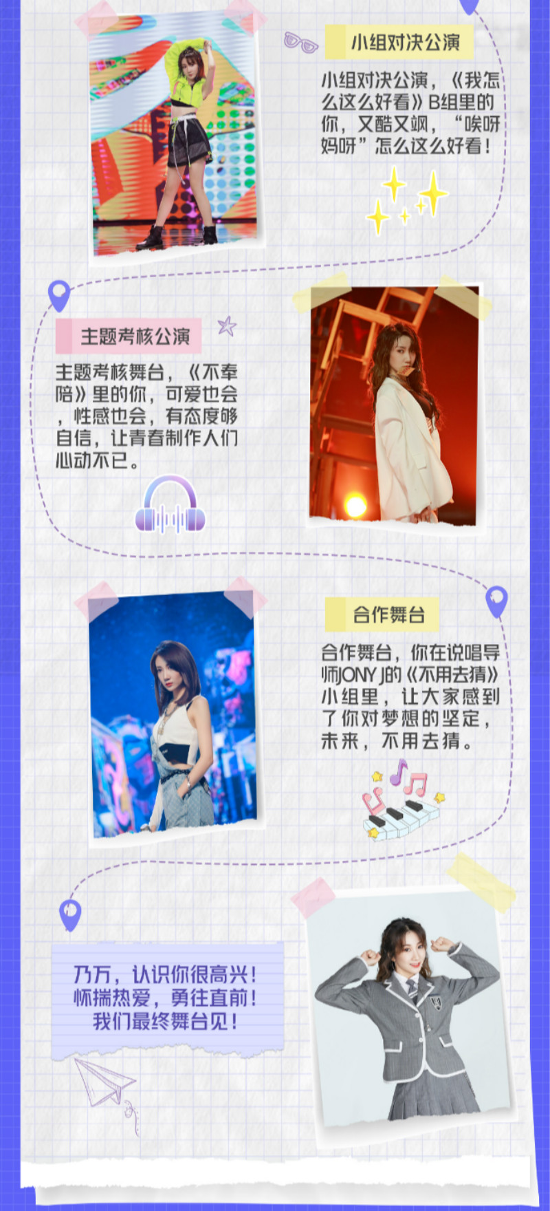“只有努力的讓自己更好,更對得起這個舞台這個位置,才能對得起你們的愛。”用力发光的你,說要做自己的你,努力完成每一個舞台的你,青春制作人們心中真實又可愛的你,祝願你未來也繼續閃閃发光!
