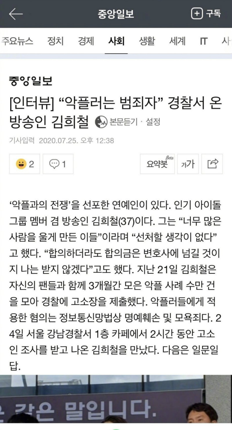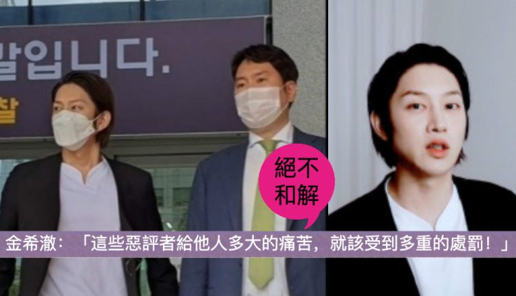威武!強烈支持!舉雙手雙腳支持!!!沒錯!說的就是我們的宇宙大明星金希澈!!!金希澈說:「這些人讓很多人哭泣,我不想善待他們。」他還表示:「即使達成協議,協議金也要交給律師,我不會接受。」在本月21日,金希澈帶著自己與粉絲們一起收集了三個月的數萬則惡意留言事例,向韓國警方提交了狀訴。24日,韓國媒體在首爾江南警察署1樓咖啡廳,見到了接受了2個小時原告調查後出來的金希澈,並進行了採訪。