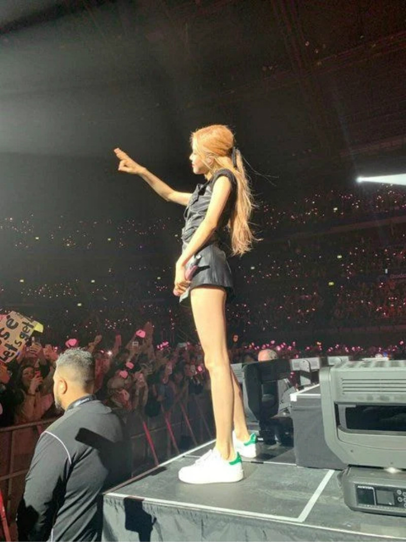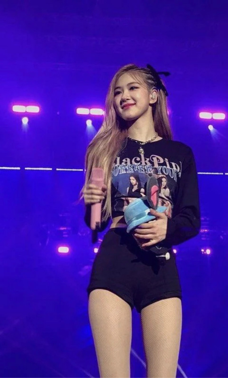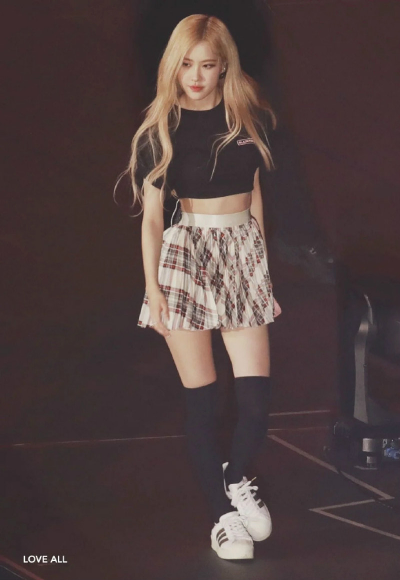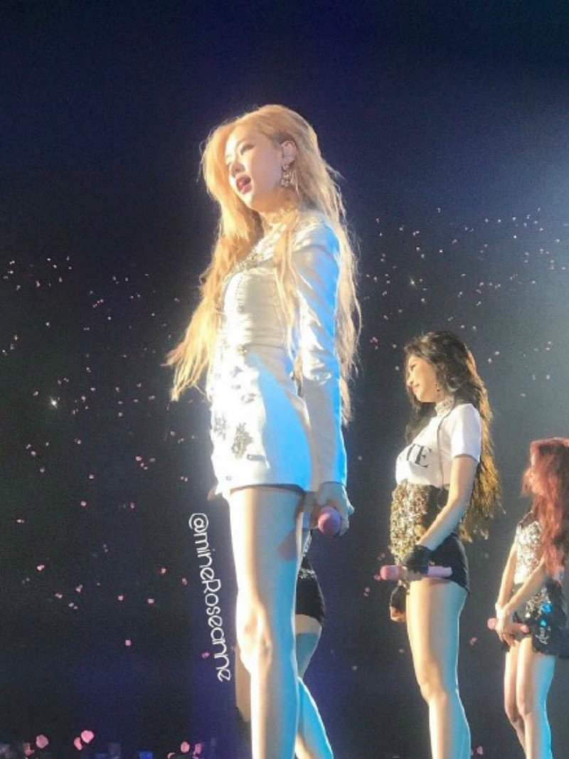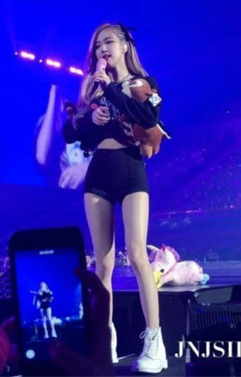 先來看看舞台上的ROSÉ,喜歡穿超短裙或褲子的ROSÉ,在舞台上完全把大長腿優勢展露100分!留意看看ROSÉ的腰間真的超平坦,零贅肉代表沒錯了!