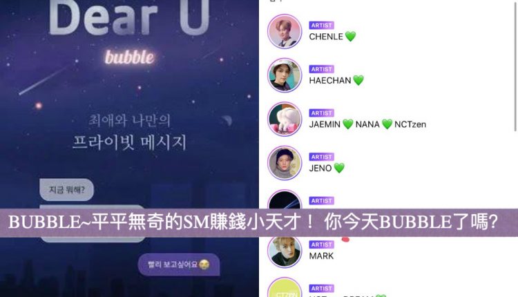 是噠!SM從今年2月推出了Lysn的新版塊,就是可以與藝人進行私人交流的”bubble泡泡服務”,訂閱之後可以收到所訂閱愛豆發來的文字消息、語音、照片、視頻等。 而且每次愛豆發來消息後,可以一對一回複(3條30字以內的文字),所有回複會經工作人員審核沒問題後可推送給愛豆。