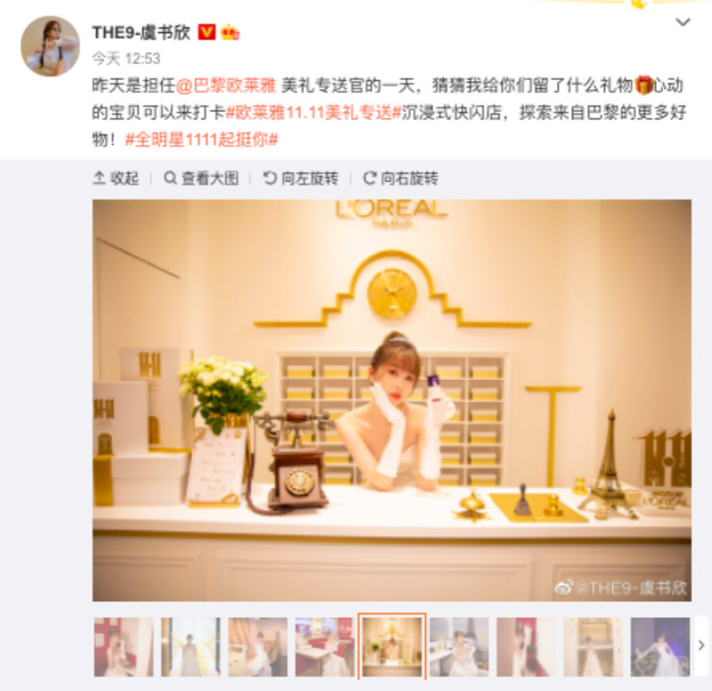 哈哈哈哈哈哈哈哈哈~果然飯隨偶像啊!表示虞書欣3號晚上以公主造型出席了直播,而在4號時就更博,一口氣曬出了超多美圖!