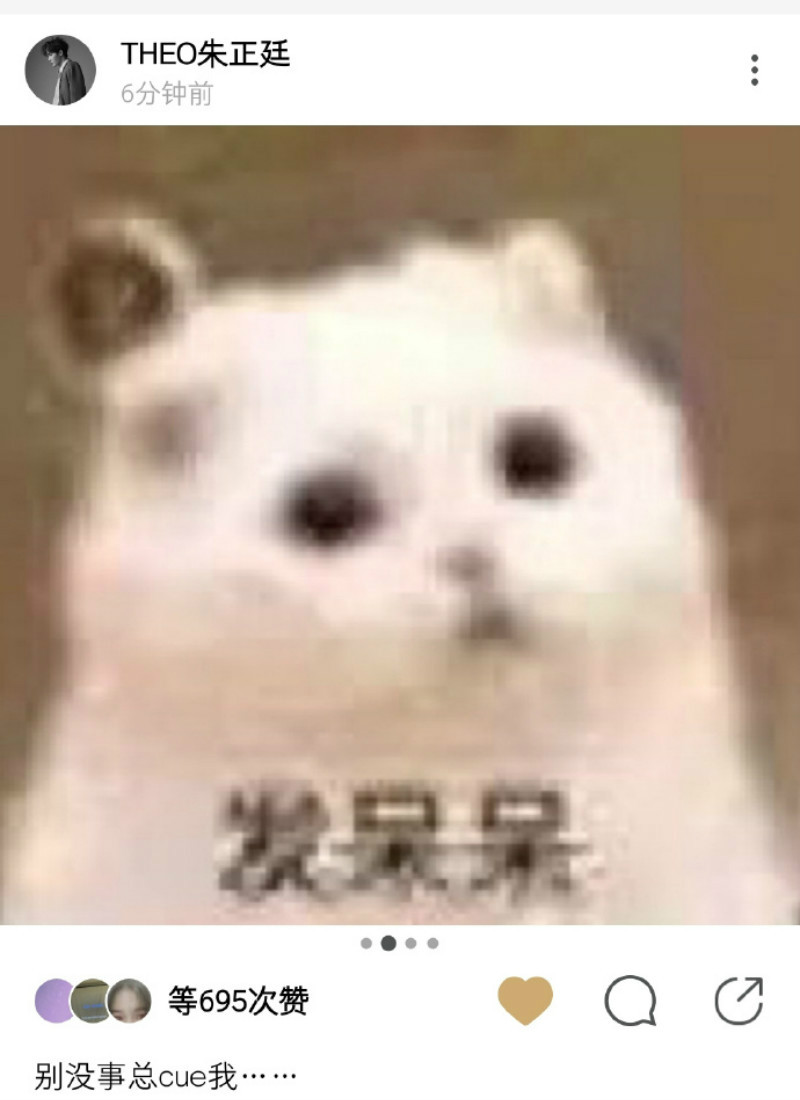 另外又有網友發現xxxfffff_97與疑似朱正廷小號互關,懷疑是圈內人士。但我們無辜躺槍的朱正廷連12g衝浪,立刻發了四張表情包,疑似回應此事:「沒事別總cue我。」哈哈哈哈哈哈哈哈哈哈!表情包富人果然是朱正廷沒錯啊!