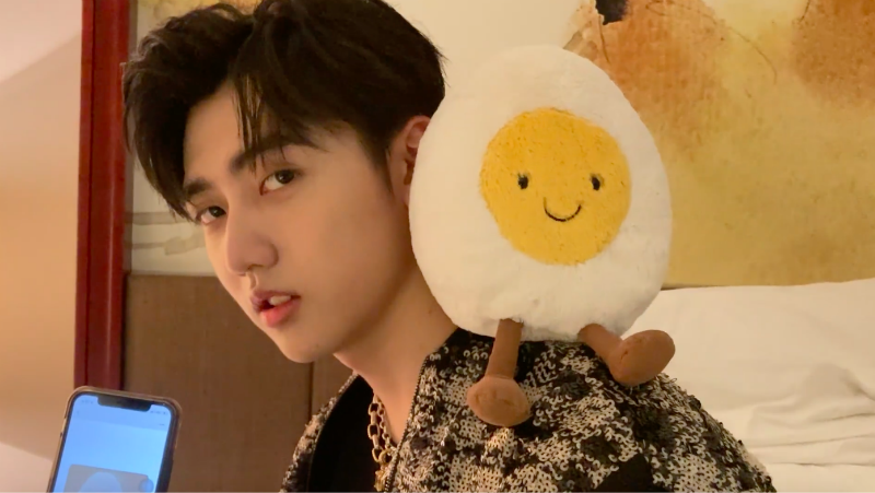 「小盒魚會喵喵叫嗎」放出的視頻中,只見焉栩嘉和拍攝者對話,而肩膀上還放著一隻玩偶,不得不說,真的是名副其實的女友視角啊!