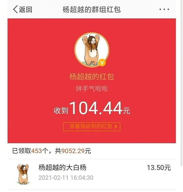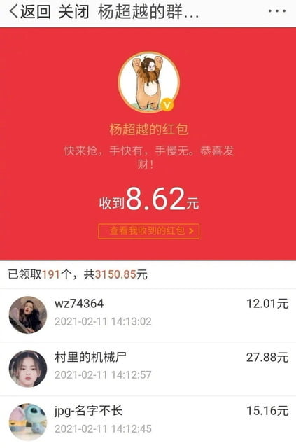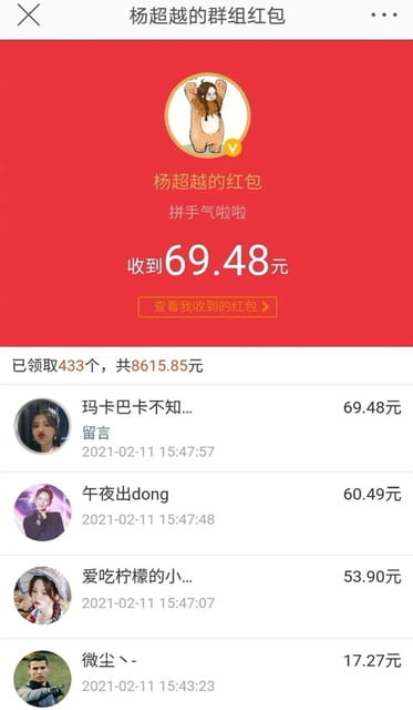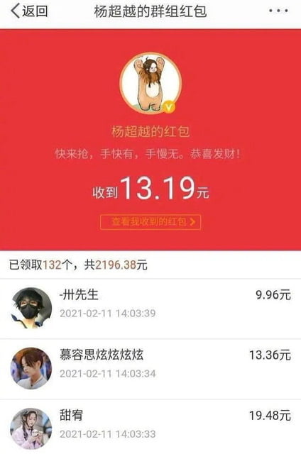 嗚哇!果然是實力寵粉的楊超越啊!配合除夕夜,我們的超越妹妹居然空降粉絲群,大派紅包啦!