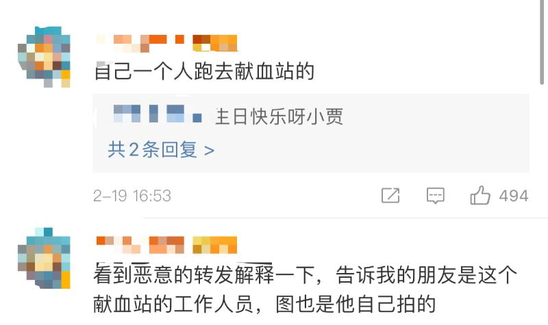 明明是有意義的事情,但偏偏就有網友惡意轉發,覺得小賈是在”作秀“搏宣傳!於是原PO再次回應澄清,表示小賈的確是自己一個人跑去獻血站的,而這張圖就是在捐血站工作當工作人員的朋友所拍攝的,並沒有任何宣傳意味。